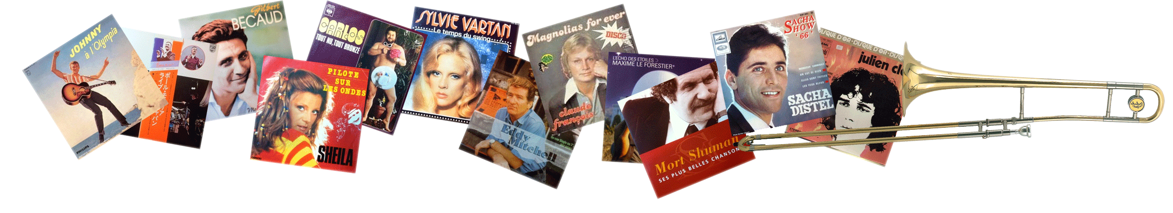 Hormis les enregistrements de Jazz avec mes différents orchestres Les Swingers, Les Four Bones et Le Swing Quartet, ou avec d’autres musiciens de renom, tels Claude Bolling, Maxim Saury, Bill Coleman, Guy Lafitte… pour lesquels je consacre une autre rubrique, voici tous les Artistes de Variétés avec lesquels j’ai enregistré 33 tours, 45 tours et CD, et les nombreux « tubes » ou chansons connues dans lesquels j’ai … « délivré mon message » !