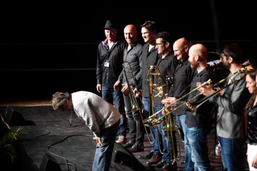 Des jeunes trombonistes s'enquièrent auprès de François Guin de savoir ce que sont devenus les répertoires des SWINGERS et des FOUR BONES.